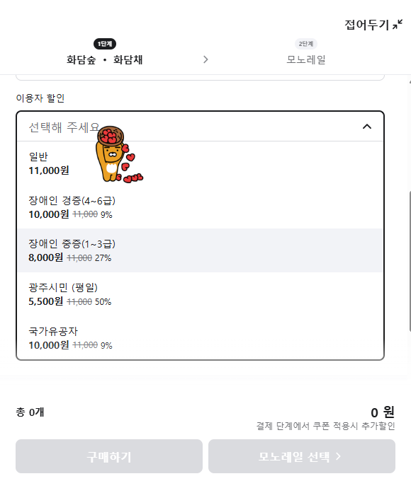 | 장애인 중증 (1~3급) | 8,000원 | 8,000원 약 27% 할인 |