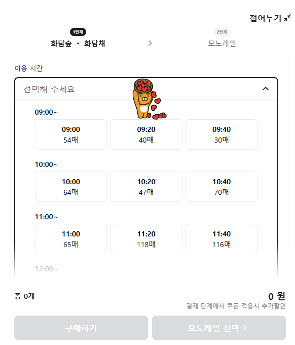 ③ 입장권 및 모노레일 옵션 선택 (입장권 선택 - 모노레일 구간 선택) 구간별 난이도에 따라 선택 가능
