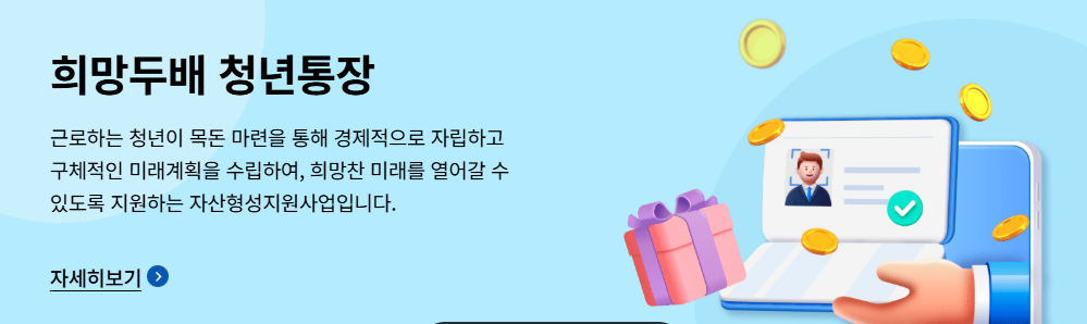 서울시 청년들의 자산 형성을 지원하는'희망 두배 청년통장' 서울시 청년이라면 단 2주간의 기회를 절대 놓치지 마세요! 자산 형성을 두 배로 도와주는 희망 두 배 청년통장, 2025년 신청이 임박했습니다. 미리 준비해 두면 절대 손해보지 않습니다.