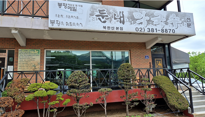 북한산 자락 아래 조용히 자리 잡은 은평한옥마을 인근 둔내막국수는 소박하지만 정겨운 공간입니다.