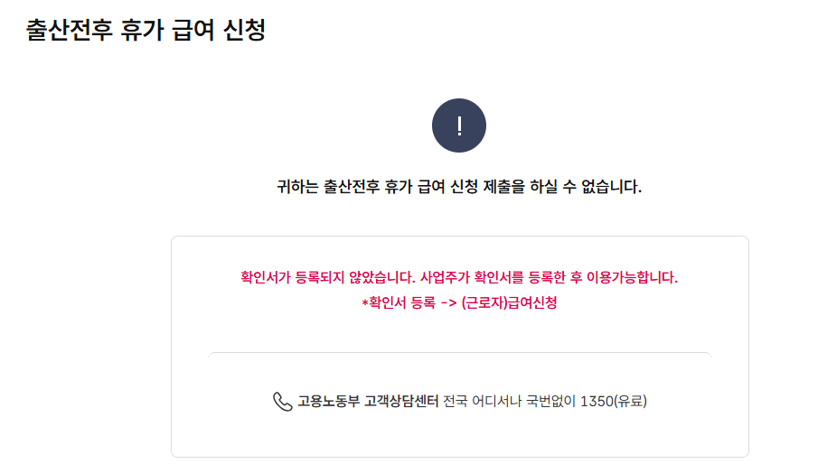 신청 절차는 고용 24 > 모성보호 > 출산전후휴가 급여 신청 경로를 따릅니다.