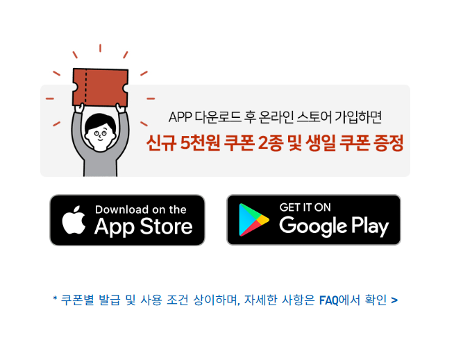 | 할인 쿠폰 | 5만원 이상 구매 시 5천원 할인 (앱 전용) / 5,100원 이사 구매시 5천원 할인 |