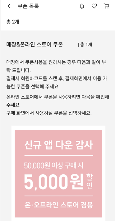 이 쿠폰은 온라인 전용이지만, ‘매장픽업 서비스’를 이용하면 오프라인에서도 쿠폰을 적용할 수 있습니다.
