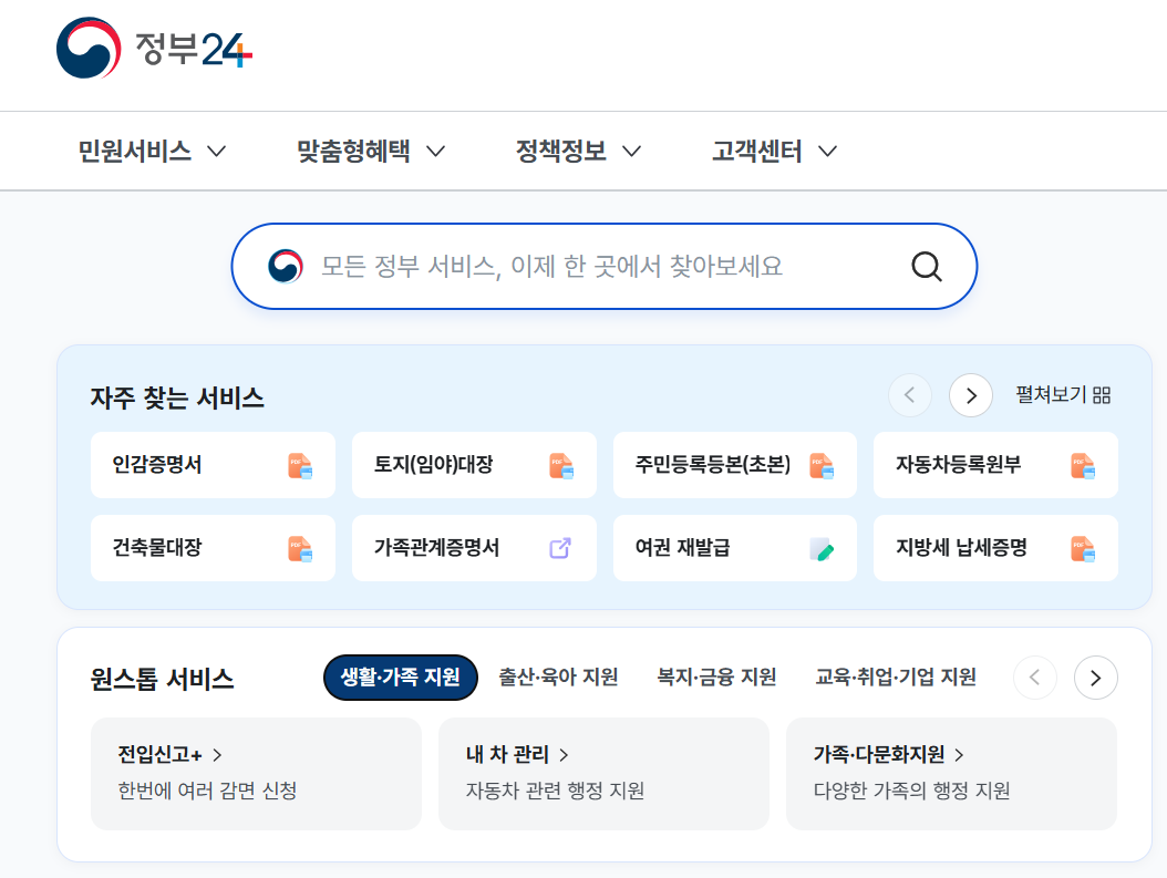 정부24 또는 복지로 사이트를 통한 온라인 신청이 가능하며, 읍·면·동 주민센터 방문으로도 신청할 수 있습니다.