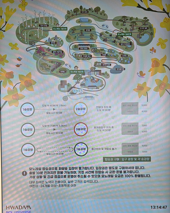 ③ 입장권 및 모노레일 옵션 선택 (입장권 선택 - 모노레일 구간 선택) 구간별 난이도에 따라 선택 가능