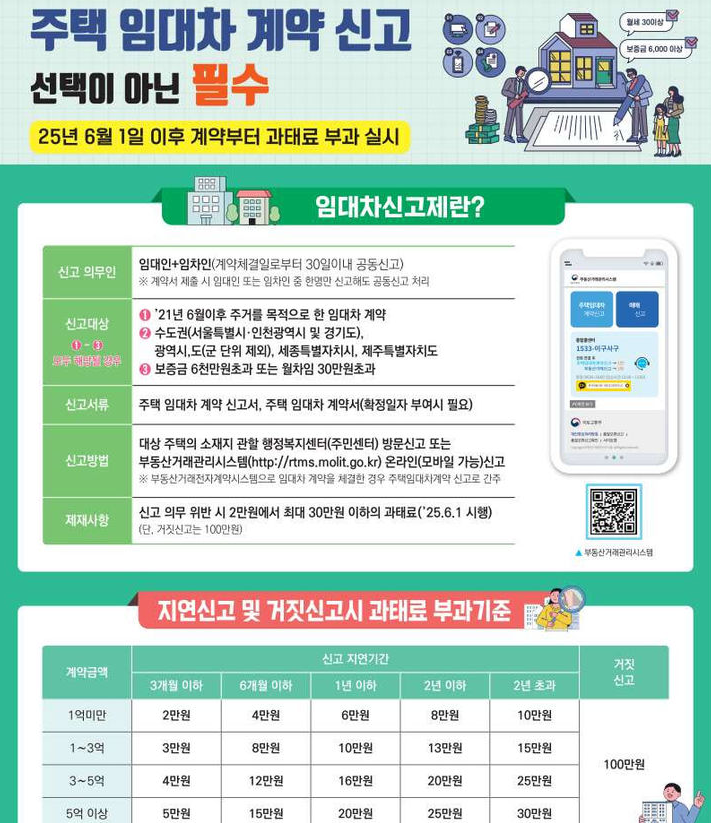 단, 2025년 6월 1일 이전 계약 건은 과태료 부과 대상이 아닙니다. 특히 갱신 계약의 경우 임대료 변동이 없다면 신고 대상에서 제외되지만, 변동이 있을 경우 반드시 다시 신고해야 합니다.