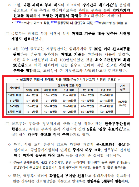 전월세신고제 과태료 부과 기준