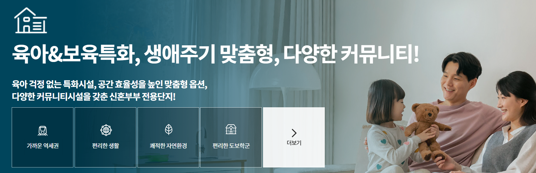 신혼부부를 위해 설계된 육아 중심 커뮤니티도 돋보입니다.